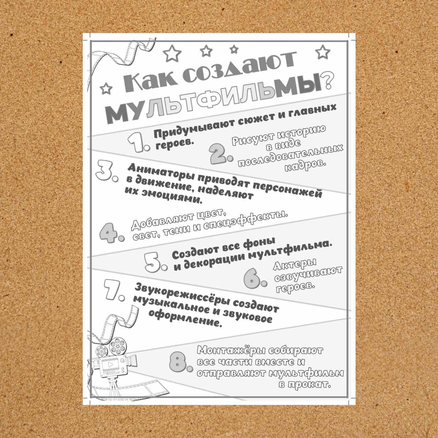 Чёрно-белое оформление для занятия «Разговоры о важном» 12 января на тему «Как создают мультфильмы». Готовые плакаты и материалы наглядно покажут школьникам весь процесс создания мультфильма: от идеи до результата. Помогает легко и интересно объяснить ценность командной работы, творчества и труда разных профессий. Скачайте и проведите яркий, запоминающийся урок. Для печати цветной принтер не требуется.