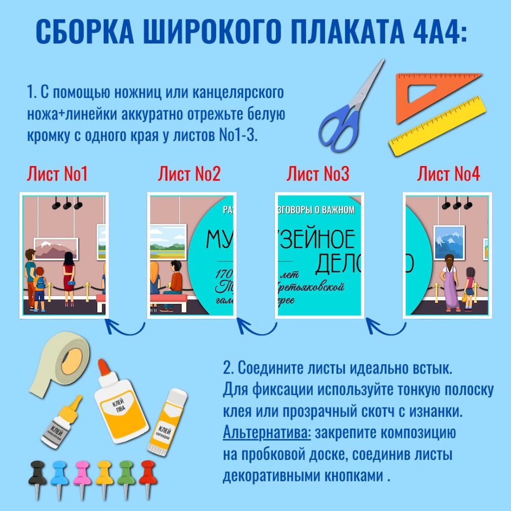 1. Широкий плакат «Музейное дело. 170 лет Третьяковской галерее» (4 листа А4).