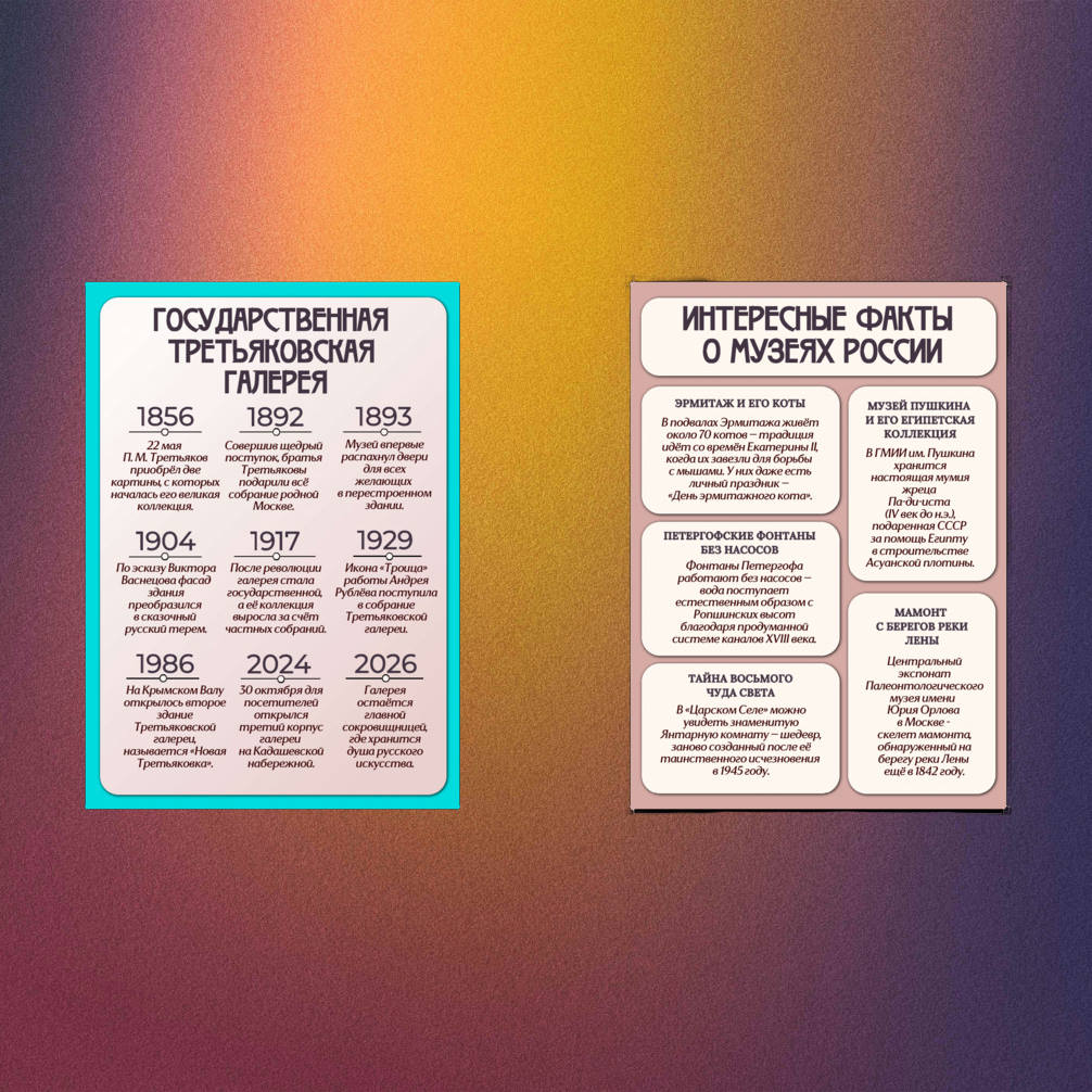 2. Плакат А3 «Интересные факты о музеях России» 1 шт. (2 листа А4).