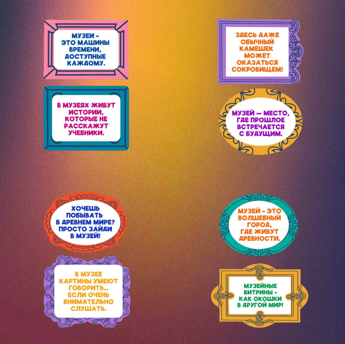 4. 8 постеров А4 с информацией о главных музеях России (2 шт. на А4).