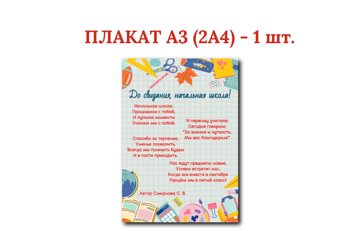 2. Плакат А3 “До свидания, начальная школа!” (2 листа А4) с авторским стихотворением на прощание с начальной школой.